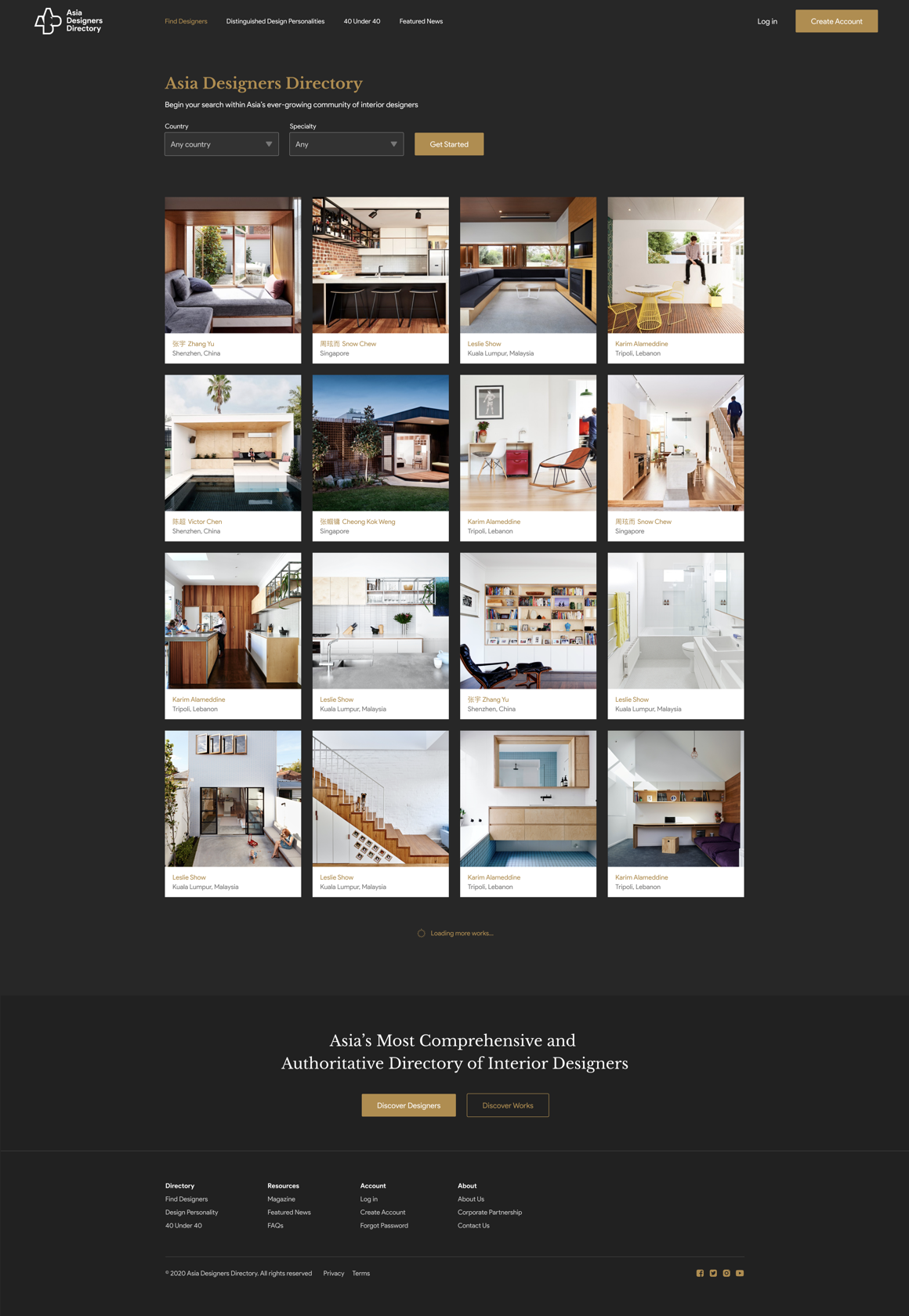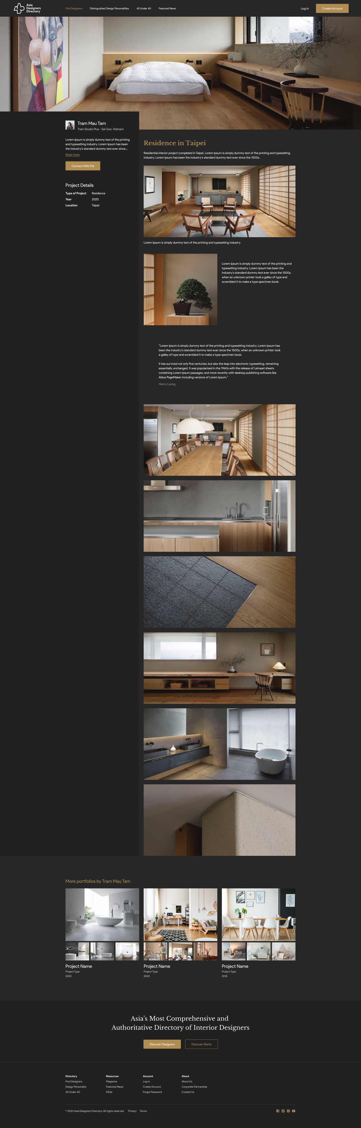 Asia Designers Directory (ADD) is Asia’s most comprehensive and authoritative directory of interior designers. Designers can register and create a profile to showcase their portfolios, while the platform featured a magazine style design to showcase some of the top works in Asia. A dark contemporary design was chosen to bring out a sense of boldness, excellence and class.